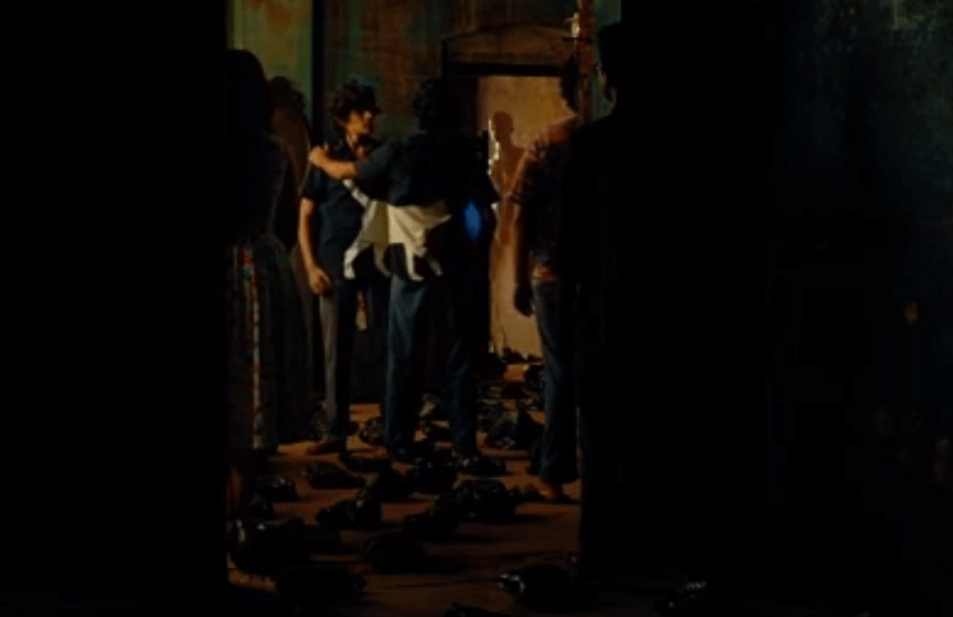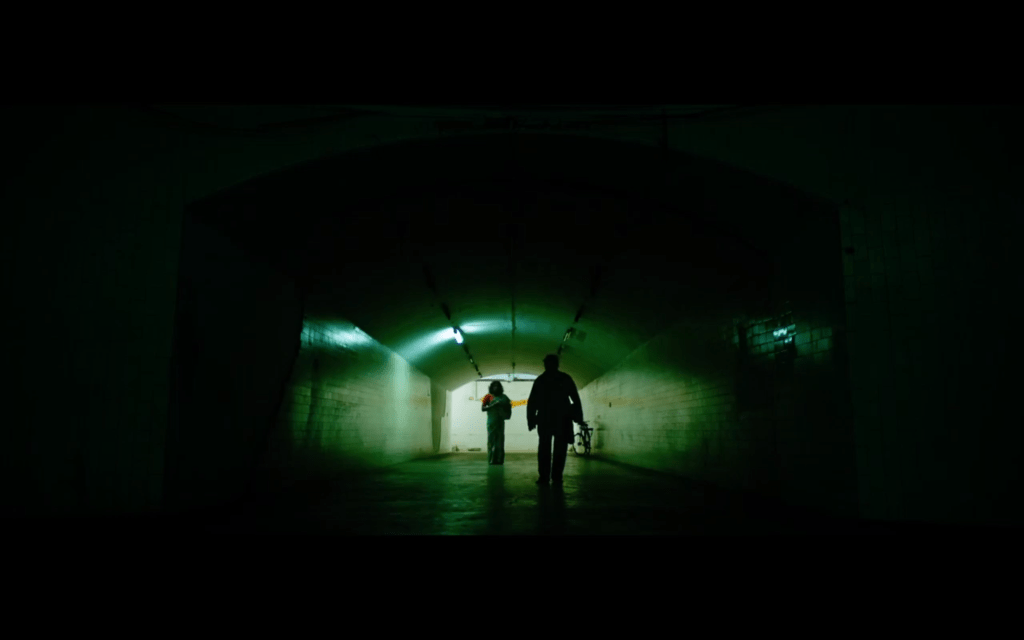 Now, how can you say this to the audience 1) a voice over, 2) intervention from a mysterious character, just like in Coen brothers The Big Lebowski and 3) breaking the fourth wall, like in Bong joon-ho’s Memories of Murder and Kumararaja chose the second option here and it’s just that the ‘mysterious character’ here is an Alien and that is it, it’s as simple as that. Coming back to the tunnel scene look how the scene starts off [fig: 3],Shilpa sitting in absolute darkness as if she was completely lost and don’t know what to do next and look where Mysskin is framed [fig: 4], at the end of the tunnel as if he’s the light for Shilpa’s problems but what’s so interesting about this scene is that how the characters transform and the same way lightning changes too (i.e) after Mysskin comes to know that he is not the only one who got saved from Tsunami by holding onto the stone(a Jesus statue) look how the lighting was done here [fig:5] now, Mysskin is in darkness and [fig: 6] shilpa walks towards the end of the tunnel where the light is (a help in the form of a constable to find her son). It’s just pure visual storytelling..